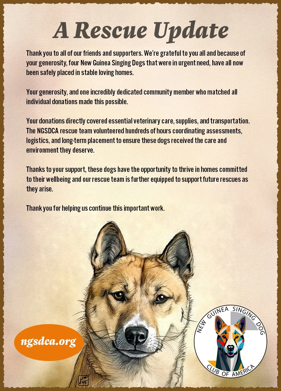 The New Guinea Singing Dog Club of America is dedicated to educating people about the bond between New Guinea Singing Dogs and people.